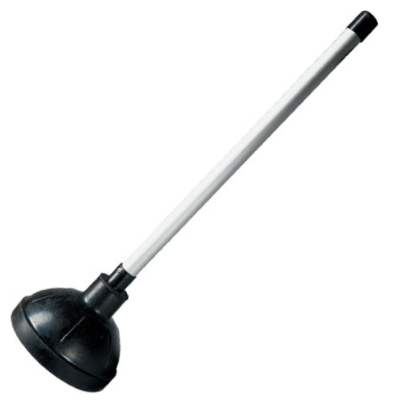 Siphon à cuvette avec manche en aluminium de 18,5 po. et une ventouse en caoutchouc convenant à toutes sortes d'éviers, de drains et de cuvettes.