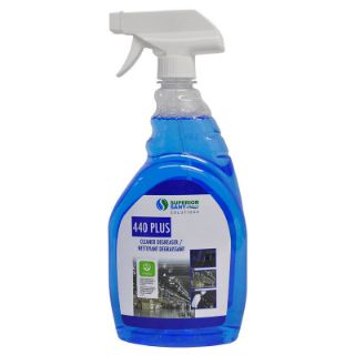 440 PLUS Nettoyant dégraissant ultra puissant prêt à l'usage, conçu spécialement pour dissoudre rapidement huile, graisse, suie, cire, saleté tenace et certaines encres et teintures. Il peut être utilisé sur de multiples surfaces dures. Ce produit est certifié ÉcoLogo. Homologué à l’Agence canadienne d’inspection des aliments. ACIA. (UL 2759 - Norme 2011 pour la durabilité des nettoyants pour surfaces dures)