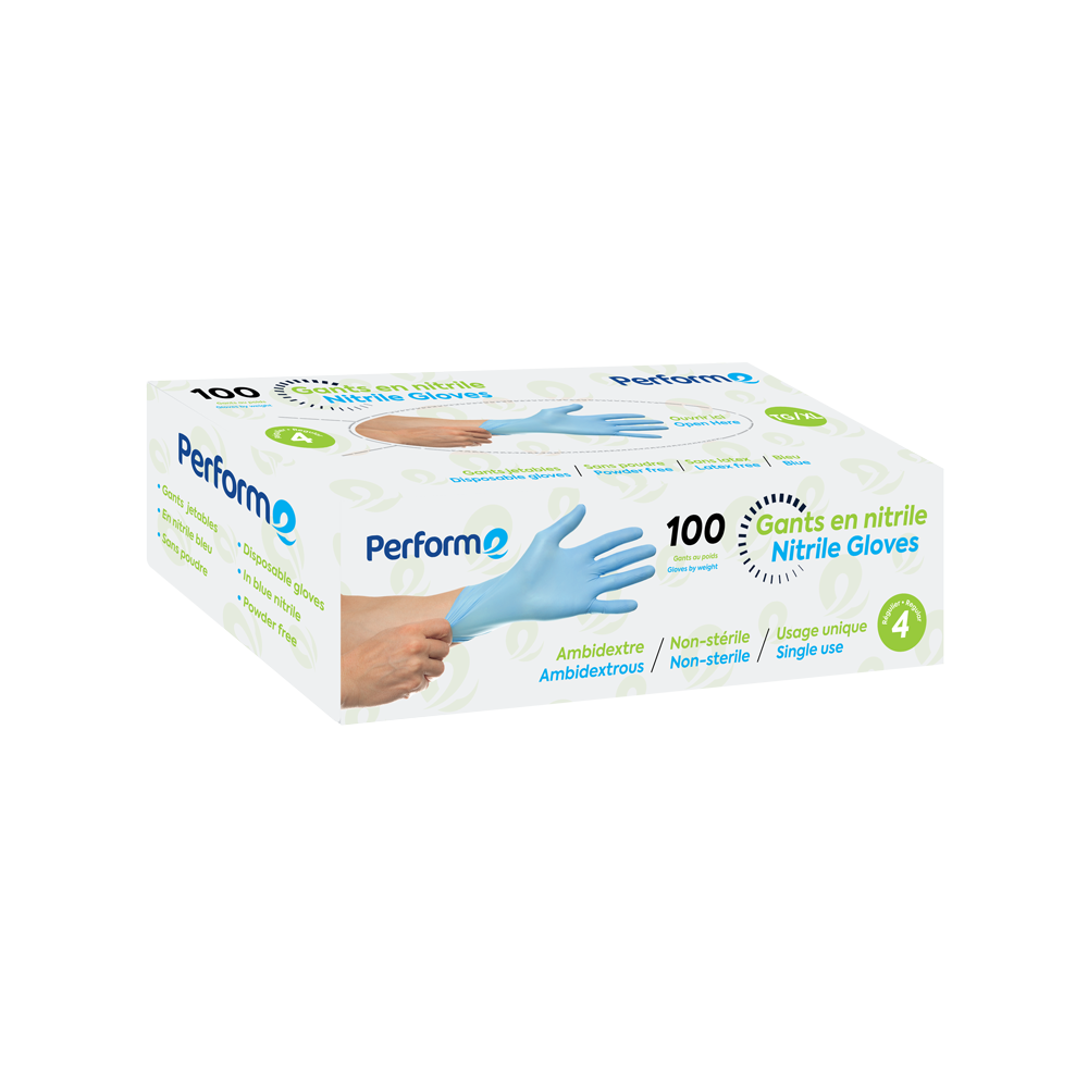 Gants de nitrile jetables bleu 4 mil grandeur extra-large. 100 gants par boîte.