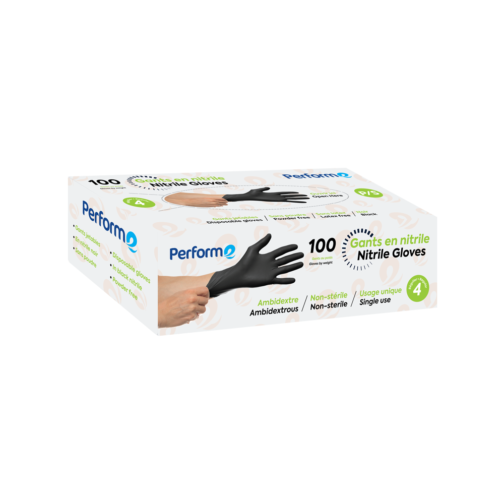 Gants de nitrile jetables noir 4 mil grandeur petit. 100 gants par boîte.
