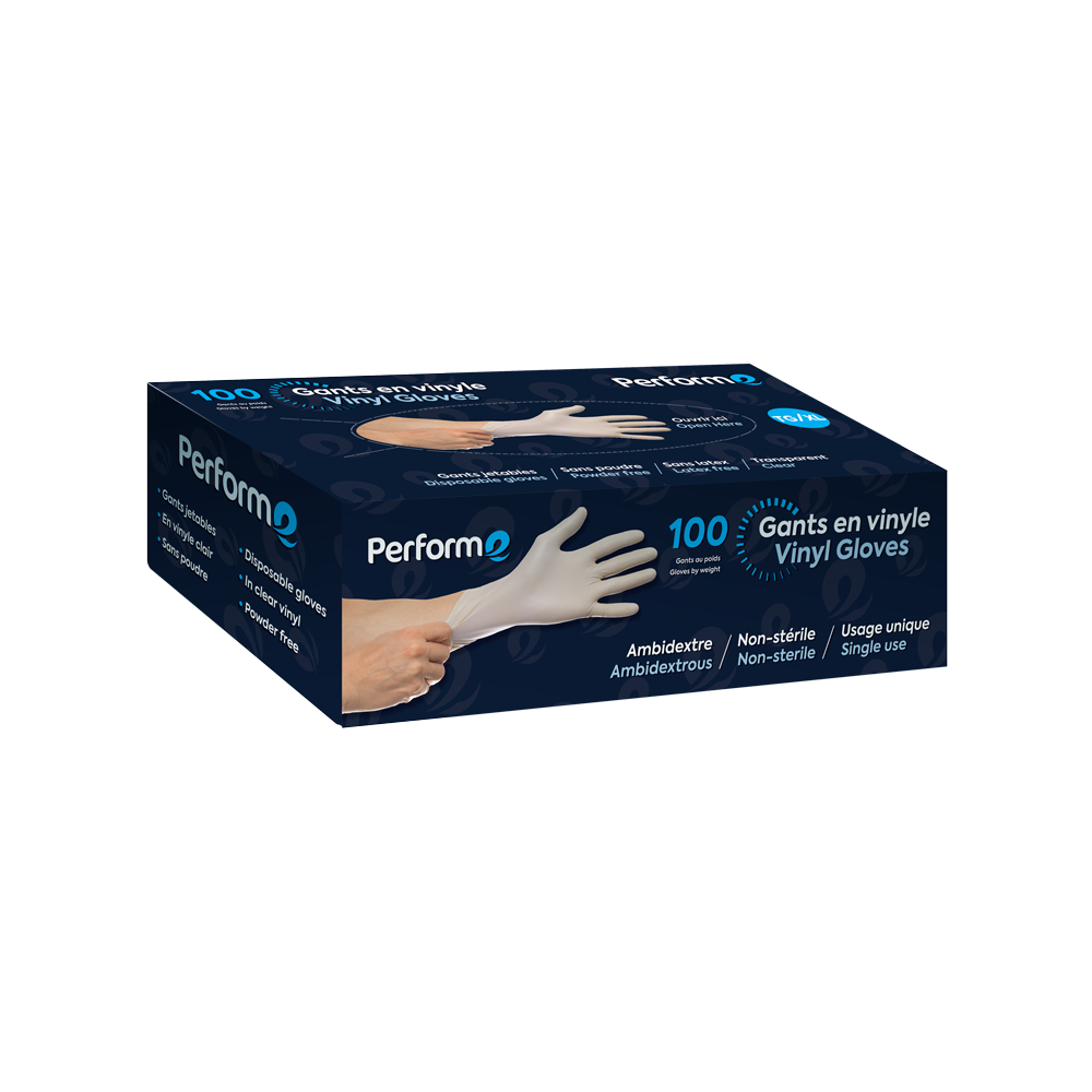 Gants de vinyle jetables transparent, grandeur Extra-Large. 100 gants par boîtes. Sans poudre.